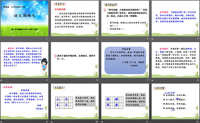 关键词:部编人教版三年级下册语文PPT课件免费下载,语文园地PPT下载,.PPT格式;