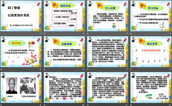 《园丁赞歌--记叙要选好角度》PPT