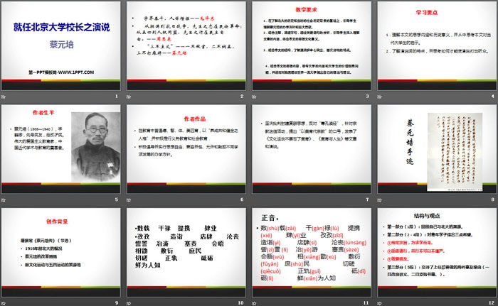 就任北京大学校长之演说PPT,第五部分内容:鉴赏要点: