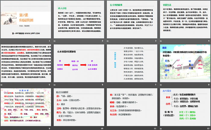 关键词:人教版高中语文必修二PPT课件免费下载,诗三首PPT下载,归园田居PPT下载,.PPT格式;