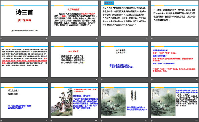 关键词:人教版高中语文必修二PPT课件免费下载,诗三首PPT下载,涉江采芙蓉PPT下载,.PPT格式;