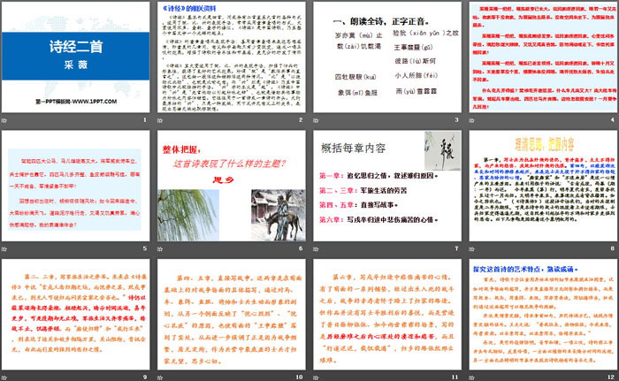 关键词:人教版高中语文必修二PPT课件免费下载,诗经二首PPT下载,采薇PPT下载,.PPT格式;