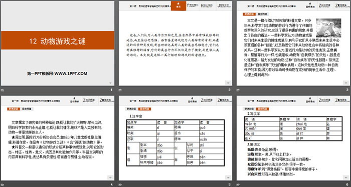 关键词:人教版高中语文必修三PPT课件免费下载,动物游戏之谜PPT下载,.PPT格式;