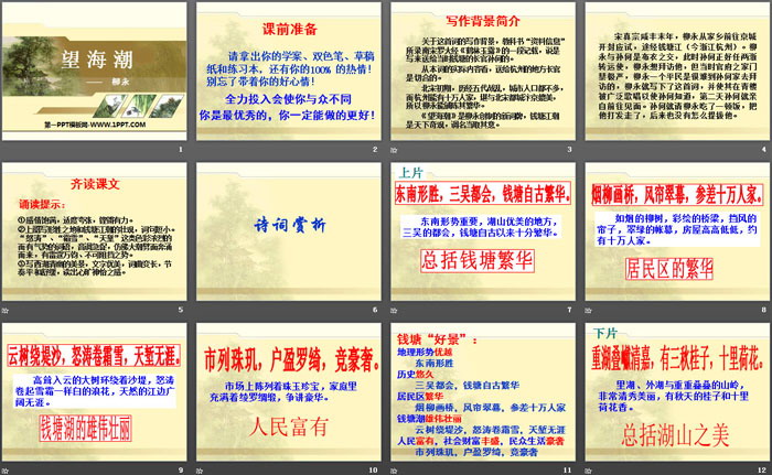 关键词:人教版高中语文必修四PPT课件免费下载,望海潮PPT下载,柳永词两首PPT下载,.PPT格式;