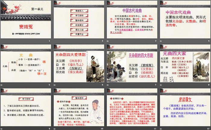 1.了解元杂剧和关汉卿的基本知识。
