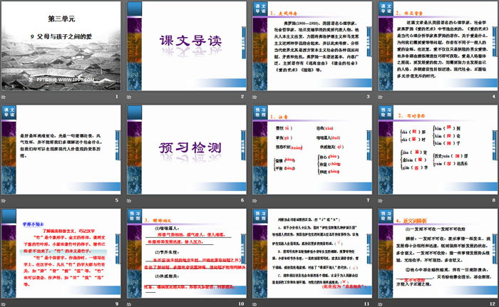 父母与孩子之间的爱PPT,第二部分内容:预习检测