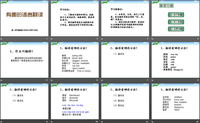 有趣的语言翻译PPT,第二部分内容:课文理解