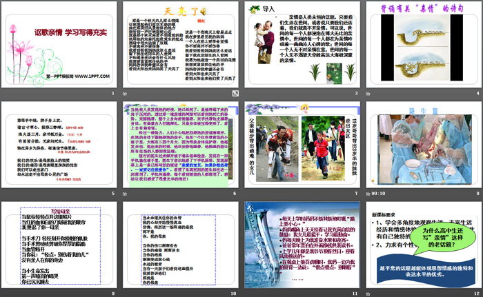 关键词:人教版高中语文必修五PPT课件免费下载,讴歌亲情学习写得充实PPT下载,.PPT格式;