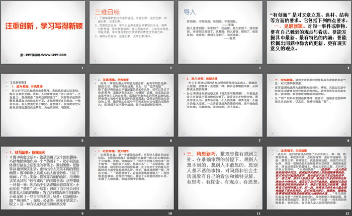 关键词:人教版高中语文必修五PPT课件免费下载,注重创新学习写得新颖PPT下载,.PPT格式;