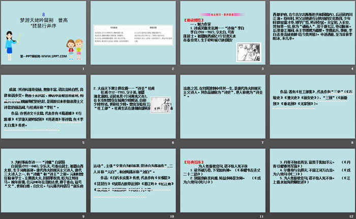 关键词:部编人教版高中语文必修一PPT课件免费下载,登高PPT下载,琵琶行并序PPT下载,梦游天姥吟留别PPT下载,.PPT格式;