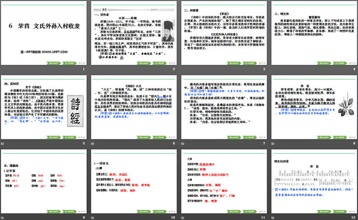 关键词:部编人教版高中语文必修一PPT课件免费下载,芣苢PPT下载,文氏外孙入村收麦PPT下载,.PPT格式;