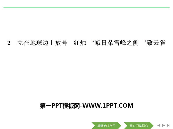 《立在地球边上放号》《红烛》《*峨日朵雪峰之侧》《*致云雀》PPT