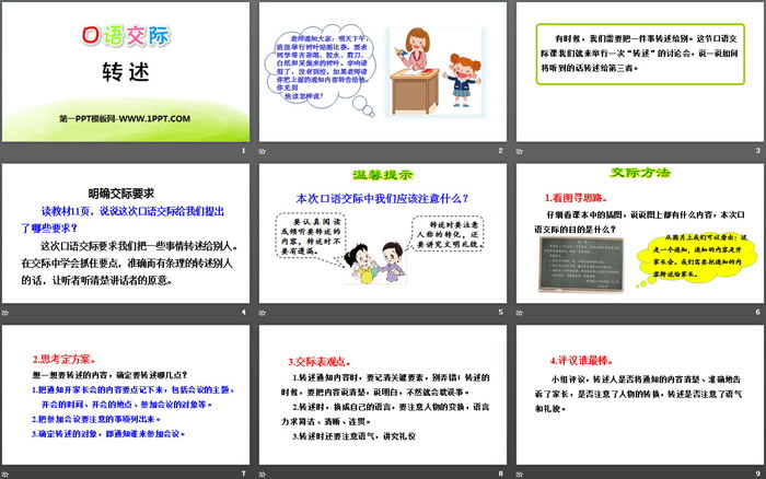 关键词:部编人教版四年级语文下册PPT课件免费下载,转述PPT下载,口语交际PPT下载,.PPT格式;