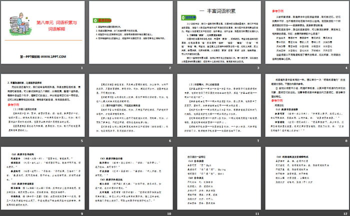 词语积累与词语解释PPT,第二部分内容:一 丰富词语积累