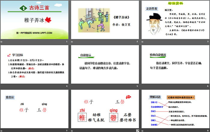关键词:部编人教版五年级语文下册PPT课件免费下载,稚子弄冰PPT下载,古诗三首PPT下载,.PPT格式;