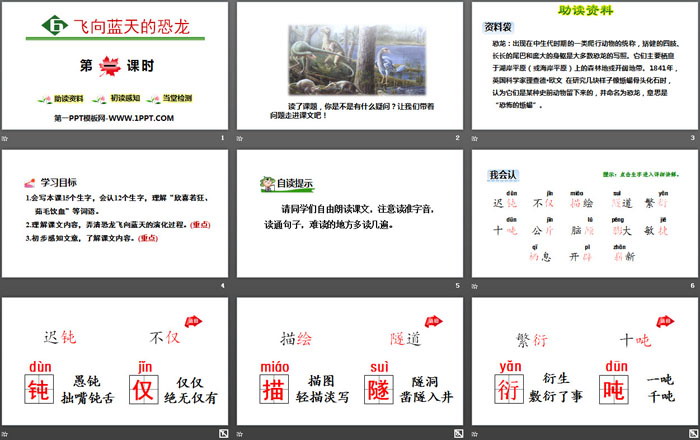 飞向蓝天的恐龙PPT,第二部分内容:自读提示