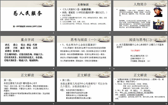 关键词:部编人教版六年级语文下册PPT课件免费下载,为人民服务PPT下载,.PPT格式;