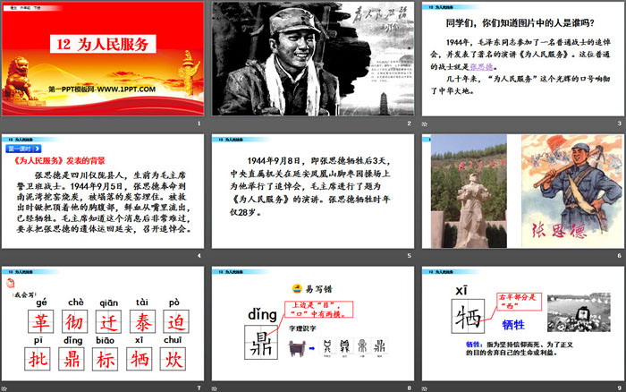 关键词:部编人教版六年级语文下册PPT课件免费下载,为人民服务PPT下载,.PPT格式;