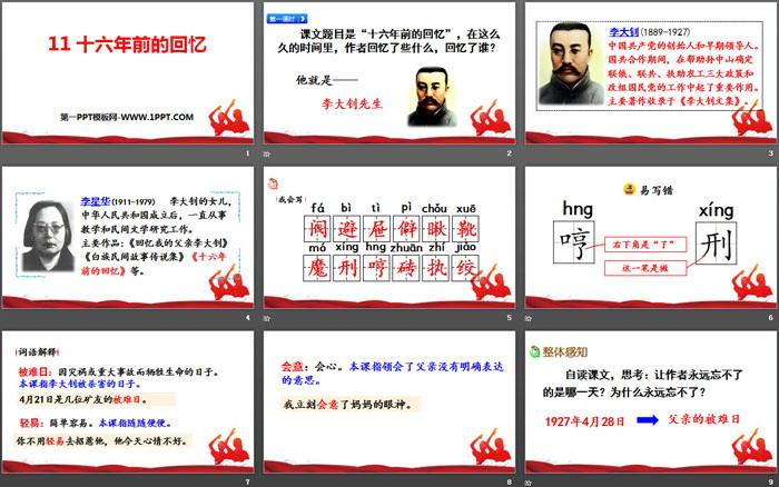 关键词:部编人教版六年级语文下册PPT课件免费下载,十六年前的回忆PPT下载,.PPT格式;