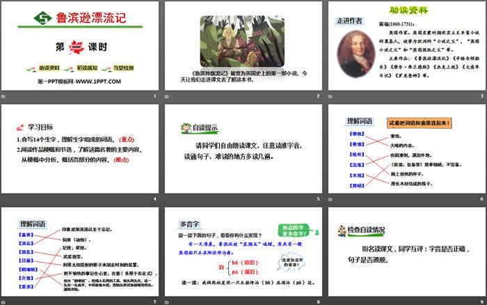 关键词:部编人教版六年级语文下册PPT课件免费下载,鲁滨逊漂流记PPT下载,.PPT格式;