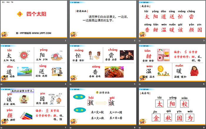 关键词:部编人教版一年级语文下册PPT课件免费下载,四个太阳PPT下载,.PPT格式;