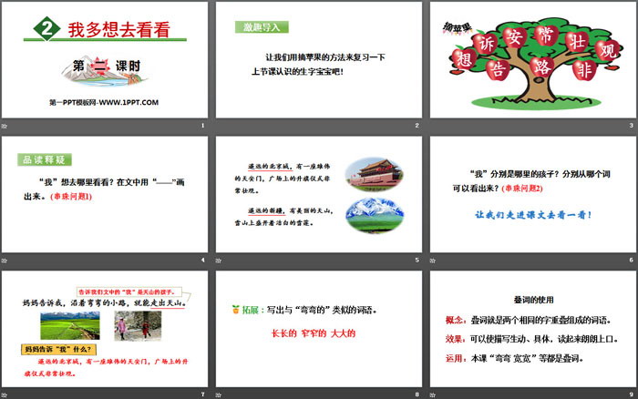 关键词:部编人教版一年级语文下册PPT课件免费下载,我多想去看看PPT下载,.PPT格式;
