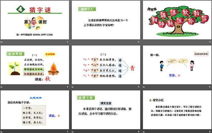 关键词:部编人教版一年级语文下册PPT课件免费下载,猜字谜PPT下载,.PPT格式;