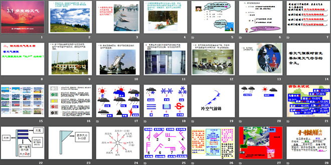 关键词:天气与气候教学课件,多变的天气教学课件,人教版七年级上册地理PPT课件下载,七年级地理幻灯片课件下载,天气与气候PPT课件下载,多变的天气PPT课件下载,.PPT格式;
