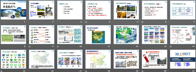 关键词:天气与气候教学课件,多变的天气教学课件,人教版七年级上册地理PPT课件下载,七年级地理幻灯片课件下载,天气与气候PPT课件下载,多变的天气PPT课件下载,.PPT格式;