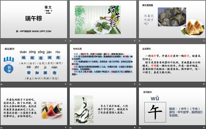 关键词:部编人教版一年级语文下册PPT课件免费下载,端午粽PPT下载,.PPT格式;