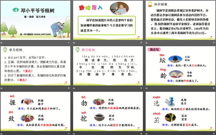 邓小平爷爷植树PPT,第二部分内容:学习目标