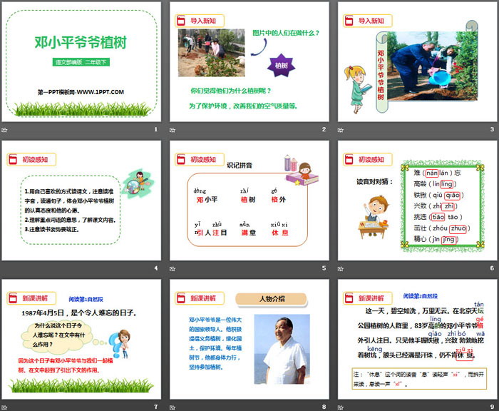 关键词:部编人教版二年级语文下册PPT课件免费下载,邓小平爷爷植树PPT下载,.PPT格式;