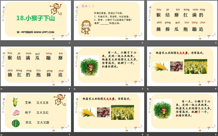 关键词:部编人教版一年级语文下册PPT课件免费下载,小猴子下山PPT下载,.PPT格式;
