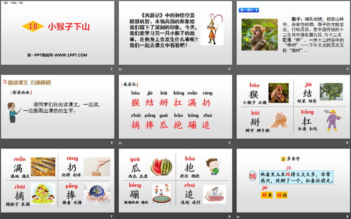 关键词:部编人教版一年级语文下册PPT课件免费下载,小猴子下山PPT下载,.PPT格式;