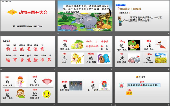关键词:部编人教版一年级语文下册PPT课件免费下载,动物王国开大会PPT下载,.PPT格式;