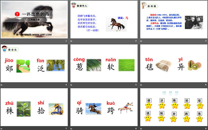 关键词:部编人教版二年级语文下册PPT课件免费下载,一匹出色的马PPT下载,.PPT格式;