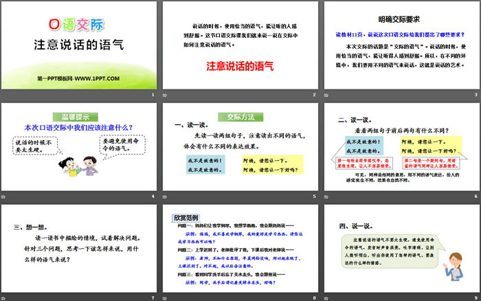 关键词:部编人教版二年级语文下册PPT课件免费下载,注意说话的语气PPT下载,口语交际PPT下载,.PPT格式;