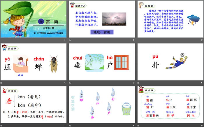 关键词:部编人教版二年级语文下册PPT课件免费下载,雷雨PPT下载,.PPT格式;