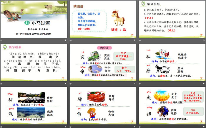 上节课我们学习了字词,对课文进行了整体感知,这节课我们深入走进课本,来看看小马过河经历了什么故事。