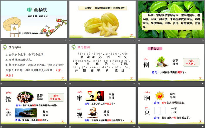 关键词:部编人教版二年级语文下册PPT课件免费下载,画杨桃PPT下载,.PPT格式;