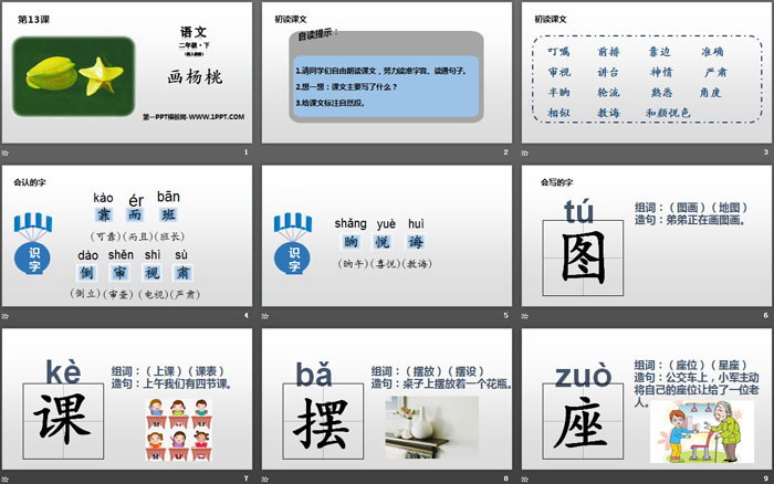 关键词:部编人教版二年级语文下册PPT课件免费下载,画杨桃PPT下载,.PPT格式;