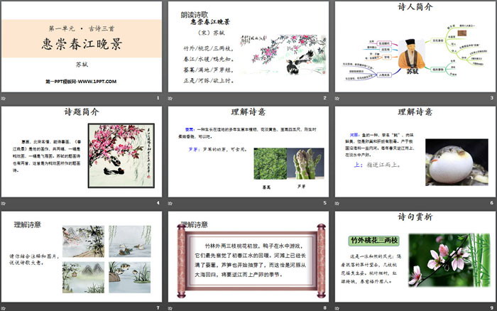 关键词:部编人教版三年级语文下册PPT课件免费下载,惠崇春江晚景PPT下载,古诗三首PPT下载,.PPT格式;
