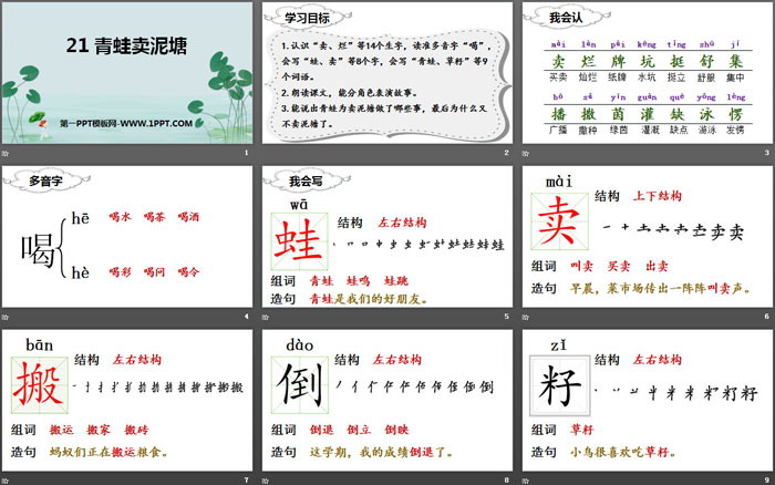 青蛙卖泥塘PPT,第二部分内容:我会写