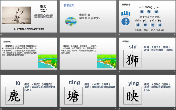 关键词:部编人教版三年级语文下册PPT课件免费下载,美丽的鹿角PPT下载,.PPT格式;