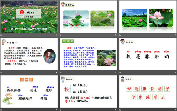 关键词:部编人教版三年级语文下册PPT课件免费下载,荷花PPT下载,.PPT格式;