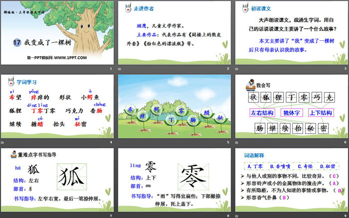 关键词:部编人教版三年级语文下册PPT课件免费下载,我变成了一棵树PPT下载,.PPT格式;