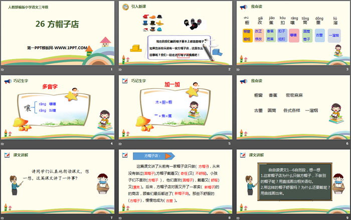 关键词:部编人教版三年级语文下册PPT课件免费下载,方帽子店PPT下载,.PPT格式;