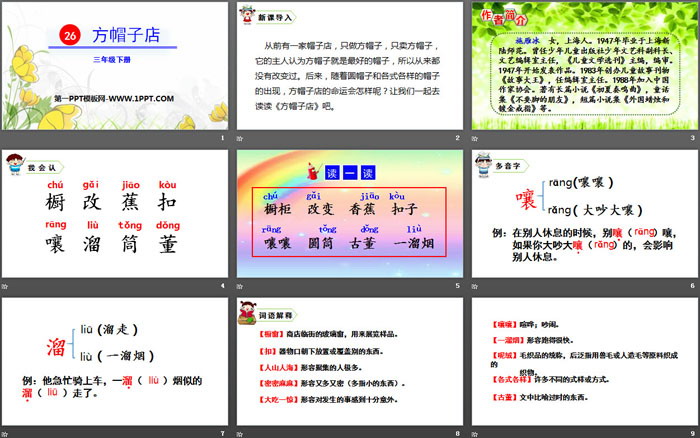 关键词:部编人教版三年级语文下册PPT课件免费下载,方帽子店PPT下载,.PPT格式;