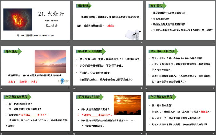 关键词:部编人教版三年级语文下册PPT课件免费下载,火烧云PPT下载,.PPT格式;
