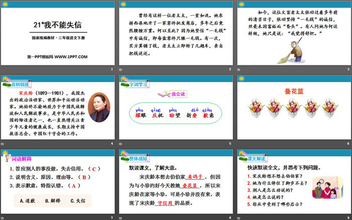 关键词:部编人教版三年级语文下册PPT课件免费下载,我不能失信PPT下载,.PPT格式;